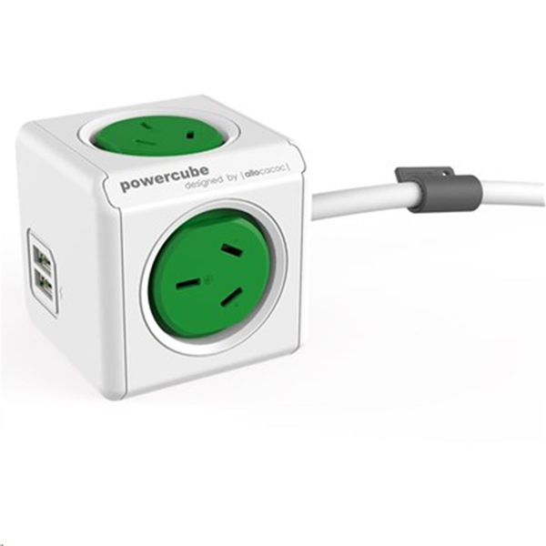 PowerCube 5 AC Power Outlets Green - Twist &; Lock Mounting for Conveniently Close Power PowerCubes are nifty little devices that bring your power source to you. The PowerCube is a 5-outlet power "cube" with extension cord, setting a new standard for the traditional power extension cord. It solves the problem of bulky plugs blocking each other, your power being out of reach, and being short of power sockets. No longer will you make your decisions based on the location of power outlets; now you can place your power where you please! Twist &; lock the PowerCube anywhere thanks to the handy mounting dock. It's especially convenient at your computer desk in the office or home - no more ducking under the table to fiddle with the power! Developed by graduates of Industrial Design from the Delft University of Technology, this product was awarded the prestigious Product Design prize at the 2014 Red Dot Design awards.