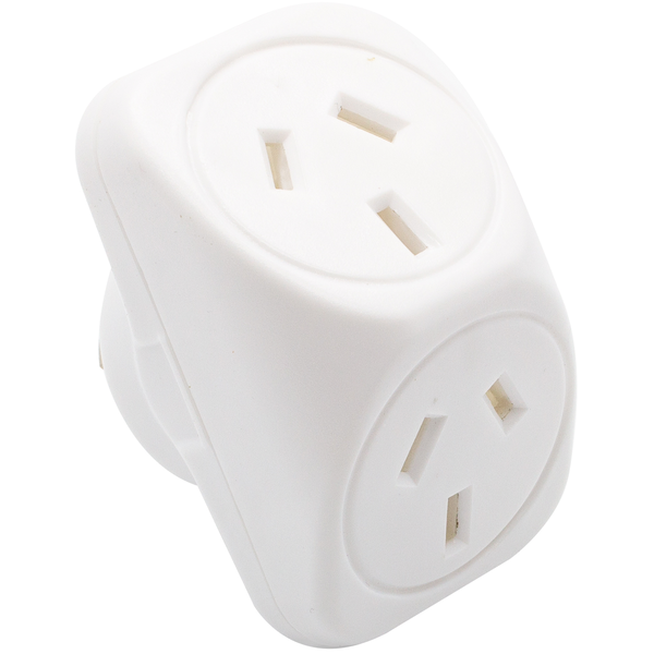 angled double adaptor allows two electrical items to be plugged into a single power outlet SAA Approved ensures this device has proven to comply with the safety requirements of the applicable Australian Standard 2 angled sockets *Please note: For indoor use only.