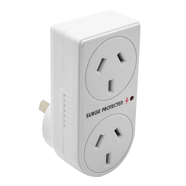 Double Adaptor - Surge Protection Power with peace of mind with the Brute Power surge-protected double adaptor. Suitable for AU/NZ sockets and with a choice of vertical, left, or right alignment, you'll find a configuration to fit any location. - Suits AU/NZ socket/plug- Surge protected- Vertically-aligned, left-aligned, or right-aligned options