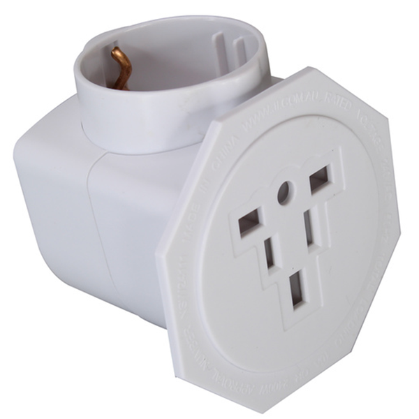The PTAMULTI2 provides two surge protected outlets, one to convert European and USA style plugs and the other to convert UK and USA style plugs for use in Australia and New Zealand. Both outlets may be used simultaneously.