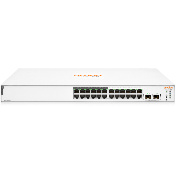 Overview The Aruba Instant On 1830 JL813A 24-Port Gigabit PoE+ Compliant Managed Network Switch helps to quickly grow your small business's network capacity to keep up with the growing list of power over Ethernet devices such as IP security cameras, access points, and VoIP phones. This entry-level managed rackmount switch includes 24 Gigabit Ethernet ports, 12 of which are PoE+ compliant with a 195W power budget. Two Gigabit SFP ports are available for fiber connections. The JL813A also supports a host of Layer 2 features without any additional licensing fees. Use the Aruba Instant On mobile app, cloud-based web portal, or local web interface to quickly configure, manage, and monitor the Aruba Instant On 1830 network switch. Performance The Aruba Instant On 1830 switch features an 800 MHz ARM Cortex-A9 processor with 512MB of memory, 215MB of flash storage, and a 1.5MB packet buffer. It's designed to deliver smooth data transfers with a 52 Gb/s switching capacity and 38.68 Mpps forwarding rate. Easy Management The Aruba Instant On mobile app allows you to remotely configure, monitor, and manage your network switch without needing any additional hardware such as cloud keys or a VPN. You can also update firmware on your Instant On devices directly from the cloud, no matter where you are or what time it is. Power-over-Ethernet This switch includes 12 PoE+ complaint ports with a 195W power budget. Features such as automatic power configuration and scheduling allow you to efficiently operate your connected devices. Multi-Site Remote Management The cloud-hosted web interface and mobile app make it easy to remotely manage multiple sites and multiple networks with distributed and multi-tenant deployments. Each site is logically separated and has its own configuration, statistics, guest portal, and admin read/write privileges. Instant On also allows you to create three admin accounts per site, offering the option to lock accounts from accidental deletion. Link Aggregation This switch supports up to 16 groups of eight network ports, which may be configured to form high-bandwidth connections to compatible devices. Management Cloud-Based ManagementUse the cloud-hosted web interface and mobile app to manage your networks and devices from almost anywhere. Local Web GUI ManagementThe built-in web-based interface makes it easy for non-technical users to directly manage the Instant On 1830 switch. The interface supports up to five HTTP and HTTPS sessions. Simple Network Time ProtocolThe Simple Network Time Protocol (SNTP) automatically synchronizes the switch's date and time for accurate system event tracking and various schedules set by the administrator. Security Trusted Platform ModuleThe integrated Trusted Platform Module (TPM) provides secure, hardware-based generation and storage for cryptographic keys that are used for connections to the Instant On cloud portal. Automatic Denial-of-Service ProtectionThe Instant On 1830 manages high-volume traffic and prevents denial-of-service (DoS) attacks against the network. Global Storm ControlProtects against conditions where incoming packets flood the LAN, causing network performance degradation for unicast traffic with an unknown destination, and for broadcast and multicast traffic.