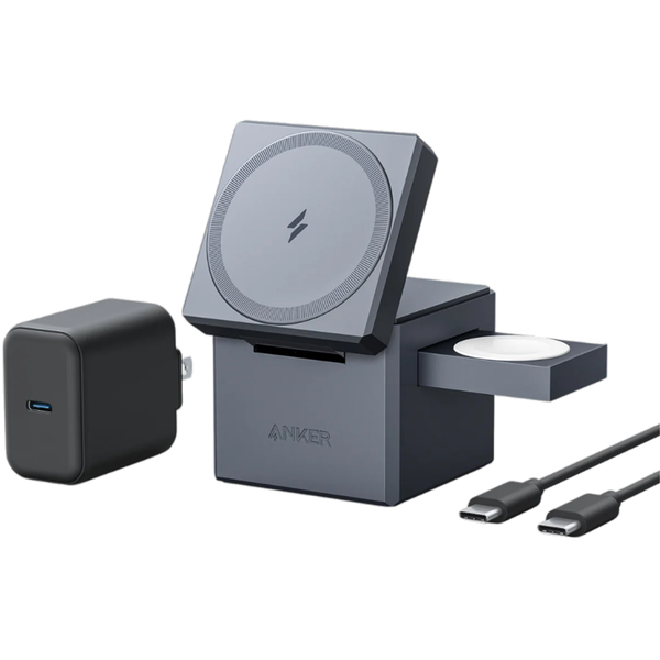 Feel the Ultra-Fast 15W Charging Power Enjoy 15W ultra-fast charging with Anker 3-in-1 Cube, leveraging Apple's official "Made for MagSafe" technology. It's engineered for the iPhone 15 / 14 / 13 / 12 series, ensuring your device is powered up efficiently. Certified Fast-Charging for Apple Watch Anker 3-in-1 Cube is not only for your iPhone-it's also officially certified for Apple Watch fast charging. Seamlessly power up your Apple Watch Ultra / 9 / 8 / 7 series with the quick charging feature, so your watch is ready when you are. 3-in-1 Charging Exclusively for Apple Devices Effortlessly power your iPhone, Apple Watch, and AirPods all at once with Anker 3-in-1 Cube with MagSafe. Minimize charging times and maximize your focus on life's more important aspects. Adjustable Viewing Experience Use Anker 3-in-1 Cube with MagSafe not just as a charger, but also as a convenient phone stand. Enhance your viewing experience with its adjustable features and never miss a moment of entertainment. Compact and Perfect for Travel Anker 3-in-1 Cube offers compact convenience for on-the-go charging. Exceptionally portable, it transitions from a folded MagSafe charger for your iPhone, Apple Watch, and AirPods, to a tiny cube that effortlessly fits in your bag when unfolded. Low-Plastic Packaging We've reduced the amount of plastic used in packaging for the entire lineup by an average of 90%. The inner material of the packaging has been changed from plastic to pulp, the packaging paper is FSC-certified 100% recyclable, and printing is done with natural soy ink. Compact Design to Reduce Plastic The devices in this lineup feature a compact design that's up to 70% smaller than other brands and uses up to 30.9 g less plastic during construction.*