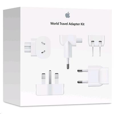 Apple Original World Travel Kit Adapter Kit The World Travel Adapter Kit includes a set of seven AC plugs with prongs that fit different electrical outlets around the world, each laser-etched with the regions they are compatible with. For world travelers, this is the perfect kit to ensure power connectivity in most countries you may travel to. The kit is designed to work with iPod, iPhone, and iPad, and is compatible with Apple MagSafe and MagSafe 2 Power Adapters (for MacBook, MacBook Pro, and MacBook Air), 10W and 12W USB Power Adapters, and Portable Power Adapters. The AC plugs included in the World Travel Adapter Kit directly support outlets in North America, Japan, China, United Kingdom, Continental Europe, Korea, Australia, Hong Kong, and Brazil.