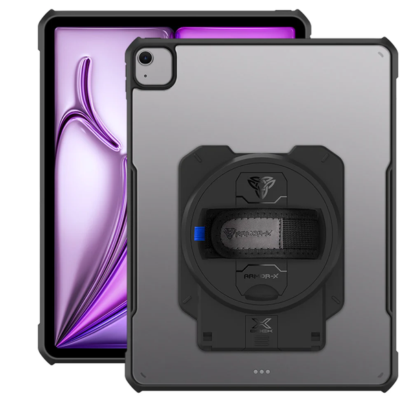 DAN-iPad-A6 | iPad Air 13 ( M2 ) | Ultra Slim 4 Corner Anti-Impact Tablet Case - Ultra-thin and Lightweight- 4 corner shock-absorbent Air-Pillow Technology protects- 360 degree swivel hand strap design for total security and one-handed operation- X-DOCK modular attachment eco-system for M-POS, thermal printer or hubs.- Kick-stand with dual angle- Cover all the edges and corners to offer full protection all around the device.- Raised edges lift the screen and camera lens off the surface to prevent damaging- Form fitting design crafted with high precision- Precise cutouts and tactile buttons ensure quick access and feedback*REMARK: Shoulder strap is included.