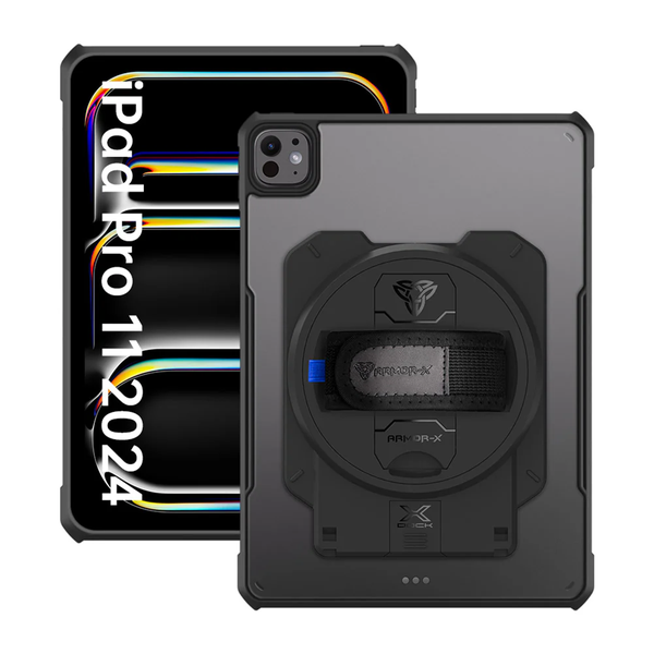 DAN-iPad-PR11 | iPad Pro 11 ( M4 ) | Ultra Slim 4 Corner Anti-Impact Tablet Case - Ultra-thin and Lightweight - 4 corner shock-absorbent Air-Pillow Technology protects - 360 degree swivel hand strap design for total security and one-handed operation - X-DOCK modular attachment eco-system for M-POS, thermal printer or hubs. - Kick-stand with dual angle - Cover all the edges and corners to offer full protection all around the device. - Raised edges lift the screen and camera lens off the surface to prevent damaging - Form fitting design crafted with high precision - Precise cutouts and tactile buttons ensure quick access and feedback *REMARK: Shoulder strap is included.