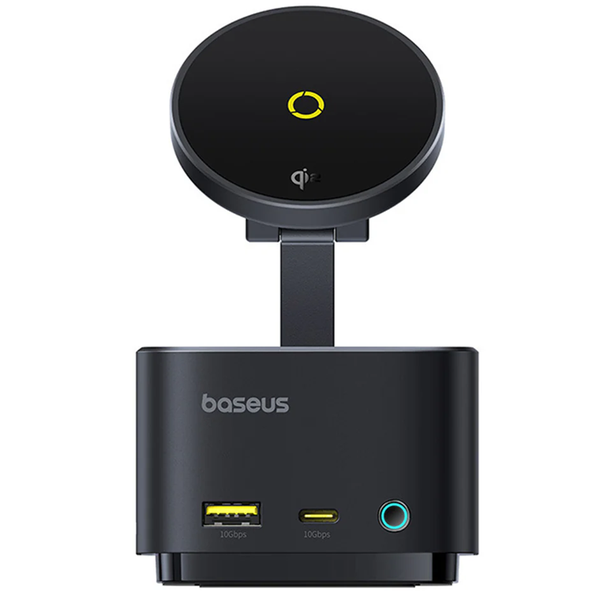 Baseus MagPro Series II 7-in-1 HUB Magnetic Wireless Charging 15W Cosmic Black The Baseus 7-in-1 Magnetic Hub offers seamless wireless charging pad functionality, featuring a 15W Qi2-certified wireless charging pad to keep your devices powered up with ease. This hub also doubles as a magnetic stand, providing an adjustable angle for optimal viewing while you charge your iPhone wireless charger. Whether you're using an iPhone magnetic case that works with wireless charging or just need a quick boost, this versatile hub meets all your charging needs efficiently. 15W Magnetic Wireless Charging: Qi2-certified wireless charging pad with an adjustable magnetic stand for secure and efficient phone charging. 4K HDMI Output: Enjoy crystal-clear visuals with support for 4K resolution at 60Hz, perfect for gaming, streaming, and professional presentations. Ultra-Fast Data Transfer: Dual 10Gbps USB-A ports and a USB-C port enable quick and reliable transfer of large files, photos, and videos. 100W Power Delivery: A USB-C port delivers up to 100W of power, efficiently charging laptops and other power-hungry devices. Foldable and Portable Design: Compact, space-saving, and foldable for easy storage and travel.