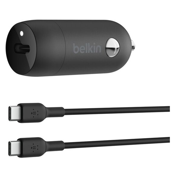 Quickly charge Samsung and Google phones, and tablets, with this compact USB-C Power Delivery-equipped 30W car charger with USB-C cable included. - 30W of fast in-car charging- PPS technology dynamically delivers optimal power for each connected device - Charge an iPhone 14 Pro from 0-50% in 23 minutes- Charge a Samsung S23 Ultra from 0-50% in 24 minutes- USB-IF certified for assured quality and compatibility - Compatible with all USB-C-powered devices- Compact design for a seamless fit to your dashboard- Includes a 1m/3.3-ft. USB-C to USB-C cable Quick Samsung Galaxy charging on the road Get more out of your commute with this compact and powerful BoostCharge 30W USB-C Car Charger. Charge a Samsung S23 Ultra from 0-50% in 24 minutes++ with the included USB-C to USB-C cable The PPS technology automatically adjusts the wattage based on your connected device. Fast, optimized power The car charger is optimized for Samsung and other smartphones, giving you an on-the-go solution for a variety of devices. Programmable Power Supply technology dynamically adjusts the charger's power output to fit the needs of your connected device. USB-C to USB-C cable included Comes with a 1m/3.3-ft. USB-C to USB-C cable so you can start charging on your commute immediately. Note 1. USB-C PD technology charges iPhone 14 Pro from 0-50% in 23 minutes when paired with a USB-C cable with Lightning connector (not included). Actual results will vary depending on varying factors, including device age, model, and usage environment, for individual users. 2. USB-C PD technology charges Samsung S23 Ultra from 0-50% in 24 minutes when paired with a USB-C cable (not included). Actual results will vary depending on varying factors, including device age, model, and usage environment, for individual users. 3. USB-C to Lightning cable required to support fast charge for iPhone 8 or later, iPad Pro 10.5-inch, and iPad Pro 12.9-inch (2nd generation).