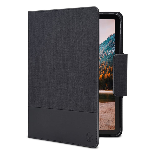 The Bonelk Classic Smart Folio is an elegant low profile case with fabric and faux leather exterior and holds your iPad securely within a perfectly form-fitted polycarbonate hard shell. This Smart Folio provides optimal protection while also adding a stylish aesthetic. Featuring a multi-view tilt design stand, auto wake/sleep functionality, secure magnetic clasp, smooth microfibre lining, and a soft padded cover to securely hold your tablet and keep it safe from damage caused by drops and scuffs.