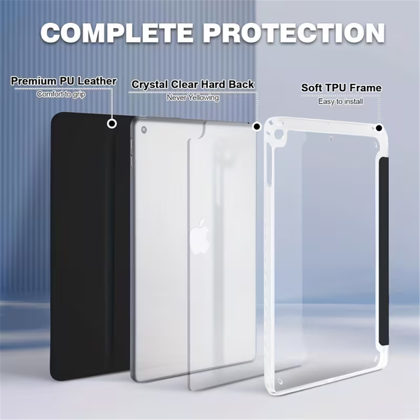 NICE Folio Case with Pen Holder ( Dark Blue with clear Back ) - for Galaxy Tab S10 Lite / S10 FE / S9 FE / S9 ( 10.9 - Inch)