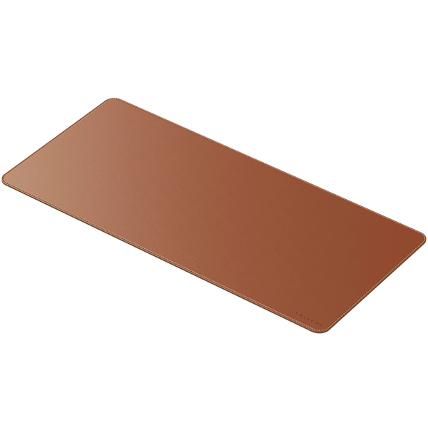 SATECHI Vegan-Leather Premium Desk Mat - Brown Protect your desk space in style with the Satechi Vegan-Leather Premium Desk Mat. Crafted from sustainable vegan leather, it functions as a mouse pad, writing surface, food mat, and more. Available in Black, Brown, and Blue. Sustainable. Sturdy. Stylish. Sustainably Made Featuring vegan leather, an eco-friendly alternative to traditional leather, and updated packaging to minimize production material and reduce environmental impact.