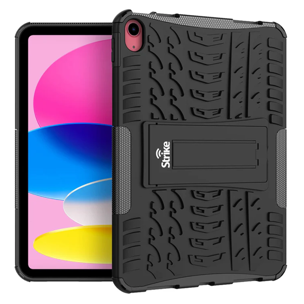 The Strike iPad 11th/10th Gen Rugged Case ensures maximum protection from drops, shocks, dust, dirt, dents, and scratches. Its ruggedised design crafted from high-quality, durable materials gives your device the reliable protection you need as you go about your active lifestyle. From any adventure to any environment, trust the Strike Rugged Case for iPad 11th/10th Gen to keep your device worry-free and optimized for performance. Style and durability combine - the Strike iPad 11th/10th Gen case is the perfect companion! - The Strike Rugged iPad Case for iPad (11th/10th Gen) features a slim and rugged protective case with stand.- Comes in two-piece technology for ultra-protection. Inner layer is a flexible soft silicone gel skin; outer layer is a rubberized hard shell.- Features a rubberized design texture for excellent grip.- With built-in kickstand for hands-free horizontal viewing.- Hassle free access to all buttons and ports.- Compatible with Apple iPad (11th/10th Gen) Dual-Layer Hybrid Protection Features a rugged dual-layer design with an impact-resistant hard PC outer shell and a high-quality silicone inner layer for superior defense. Built-In Kickstand This iPad (11th/10th Gen) case provides convenient horizontal viewing and a secure grip. Easy Access Design Offers quick access to the charging port, jacks, power, and volume buttons, while a raised camera port protects the lens. Enterprise-Grade Durability Designed to withstand harsh working conditions in industries such as warehousing, logistics, manufacturing, and transportation, the perfect iPad (11th/10th Gen) rugged case for business applications. Military-Standard Compliant Meets US Department of Defense MIL-STD-810G 516.7 drop-test standards.