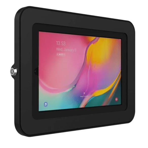 Tab Secure Slim Wall Mount - iPad 10.9 10th Gen Black Mount is the ideal solution for your iPad. Its slim and sleek design allows you to mount your iPad close to the wall, providing seamless integration with your surroundings. Whether you need to display information, streamline workflows, or enhance customer interactions, this wall mount offers a simple and elegant solution. It's perfect for featuring your display at receptions, showrooms, expos and trade shows. Maximise Space with the Tab Secure Slim Wall Mount for iPad Experience effortless functionality and peace of mind with the Tab Secure Slim. This secure mounting solution not only keeps your iPad close to the wall, but also ensures its safety with the included set of wall screws and two keys. - Compatible with iPad, Android or Windows tablets- Ability to switch from landscape to portrait configuration- Option to cover the home button and camera lens- 'Radio Transparent', allowing WiFi, Bluetooth and 3G/4G to remain fully functional- Tubular lock with 2 keys- Can accommodate extra cable lock for added security- Concealed cable enclosure Elevate your workspace with this sleek and functional wall-mounting solution, transforming your iPad into a versatile tool that enhances productivity and engages your audience. The exposed home button and front camera allow for convenient and uninterrupted usage, making it ideal for interactive displays, self-service kiosks, or digital signage. With its user-friendly design, you can easily access and operate your iPad while maintaining a clean and clutter-free environment.