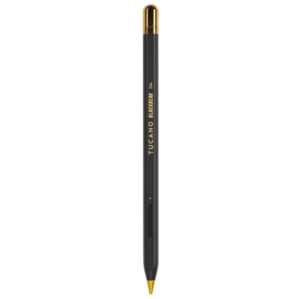 Tucano Blackbeak Pencil for iPad Special "Blackbeak" edition, made of black baked aluminium with gold coloured details, of the Tucano active capacitive pen designed for all iPads. Equipped with palm rejection technology that allows you to rest your palm quietly on the screen while writing, so you can concentrate only on the task at hand. Allows you to write, draw, take notes, all with a simple wireless connection. Equipped with an integrated magnetic holder for attaching the pen directly to the side of your device (for compatible models). Equipped with a magnetic closure cap that hides the practical USB-C connector for fast charging even through the iPad (for models equipped with USB-C port). USB-C cable for fast charging and 2 replacement nibs included, compatible with Apple Pencil 1st, 2nd and Apple Pencil USB-C. - Automatic shutdown after 5 minutes of inactivity- 2 replacement POM tips included- LED battery charge indicator- Charging time: 40 minutes- Lithium battery Capacity: 165 mAh.- Working Time: around 9 hours.- Compatibility: designed for all new iPads (2018 and later).