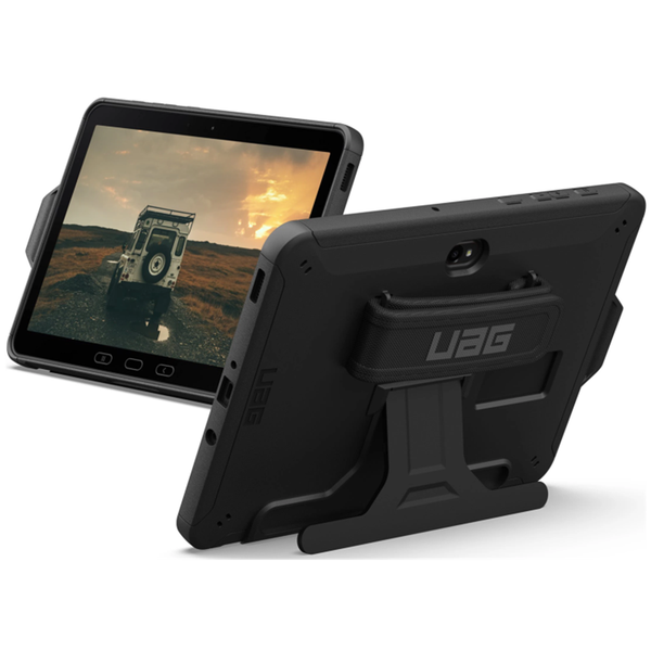 Inspired by modern wanderers, we give you the Scout series. Minimalist look with complete coverage. Featuring a featherlight TPU construction and impact-resistant core. The built-in kickstand transforms your tablet into laptop mode or video viewing mode. Along with a functional and comfortable hand strap so you can work on the go. Medical grade wipe tested, meaning it will not compromise the condition of the case when using medical grade wipes. Perfectly suited for those who work on the go or in the field. Versatile and protective, this case is essential for your tablet. - Built-in kickstand and silicone hand strap- S Pen holder. Asset tag window- Works with UAG Shoulder Strap (not included)- Medical wipe tested