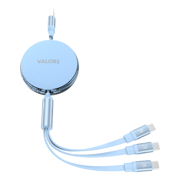 Valore USB-A to USB-C 3-In-1 Retractable Cable (MA188) - Blue - Triple-device charging capability- 66W multi-compatible fast charging- 5 adjustable length options