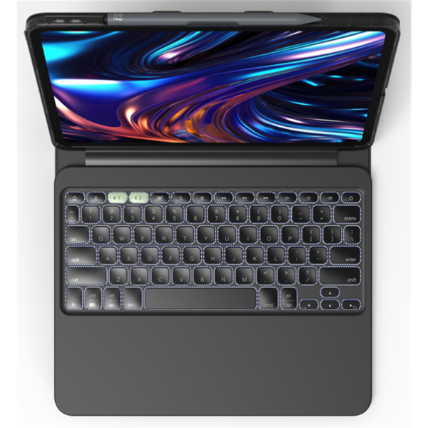 Detachable Keyboard The keyboard detaches to accommodate different uses and environments. Adjustable Kickstand With the Pro Keys 2 you will always have an adjustable kickstand for your tablet (with or without the keyboard). Long-lasting Battery Type for up to year before recharging the battery.* The sleep/wake function helps preserve battery life when keyboard is not in use. Holder for Stylus The case accommodates the stylus which attaches magnetically to the iPad. The magnetic flap protects the Apple Pencil and holds Pro Keys closed. Backlit, Laptop-style Keys Our keys strike cleanly and evenly for an easy, comfortable typing experience. New iconography A refresh to the iconography is easier to understand and features additional functionality, including a key dedicated to open the emoji keyboard at the touch-of-a-key. New and improved keyframe We surveyed over 300 people and this new key shape was voted the favorite over competitors and previous models. New shape and better key travel The new shape will not only delight customers visually but also provide a larger key surface area to eliminate missed keystrokes. The center keys feature a dished, concaved shape to rest fingers comfortably, while the outer keys are slightly convex, making them easier to reach.