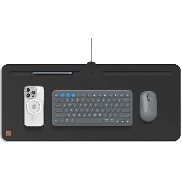 Discover ZAGG's perfect desktop companion! 10W of fast charging wireless power With 10W wireless charging capability, you can charge all your wireless charged devices, including ZAGG Pro Keyboards, Pro Mouse, Pro Stylus 2, your phone, etc Integrated USB-C cable Keep your workspace clean and tidy with an integrated USB-C cable to charge all your wireless charging devices. Premium felt-like surface The top of the mat is made with a smooth, wipeable surface with a non-slip base. The surface also has grooves for or stylus pen. Non-Slip Bottom Layer Designed to lay flat and stay put on your desktop with its non-slip base.