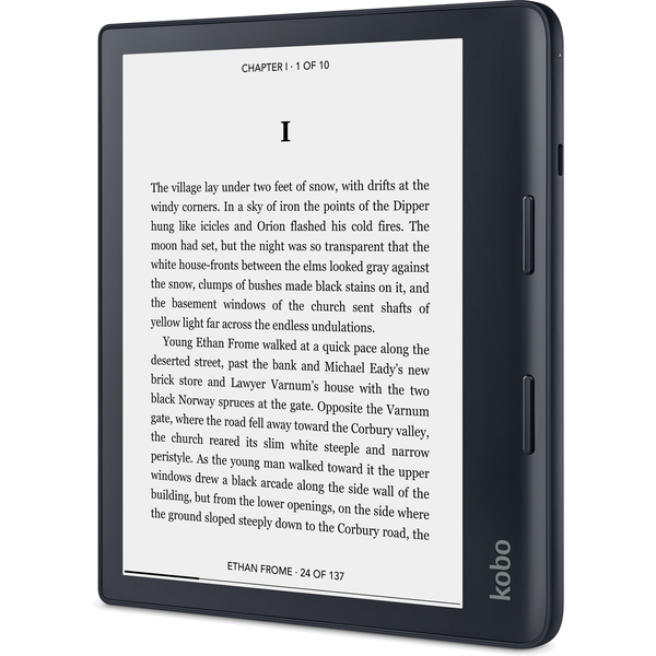 A screen that looks and feels better Kobo Sage's 8" flush, high definition E Ink Carta 1200 touchscreen offers deep contrast, super-clear readability, and faster page turns on an expansive display. Dark Mode offers a new way to reduce eyestrain.