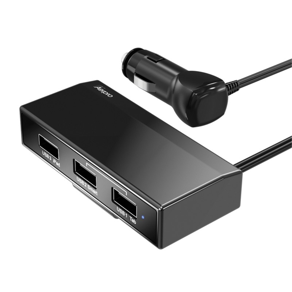 The car charger allows you to conveniently charge your smartphone, tablet or other USB devices right from the accessory socket in your vehicle. Featuring three USB ports, 5V/2.0A USB-A and two 5V/2.5A (shared) USB-A ports, it is designed to charge up to three devices at a time. The 1.0M cable length allows the charging unit to be positioned virtually anywhere in the vehicle and it comes supplied with adhesive tape and rear seat mounting clip for simple installation. The gloss black finish with blue LED power indicator light presents a modern and stylish design that will suit the vehicle interior. This charger is 12/24V compatible, making it suitable for use in a wide range of vehicles including cars and trucks. - Plugs into a vehicle accessory socket.- Suitable for charging up to three USB devices.- 1.0M cable length for various mounting positions.- Adhesive base for surface mount installation.- Mounting clip for rear seat installation.- Single 5V/2.0A USB-A port.- Dual 5V/2.5A USB-A ports (2.5A max shared).- 5V/4.5A Max shared output. 12/24V Input voltage- Blue LED power indicator.