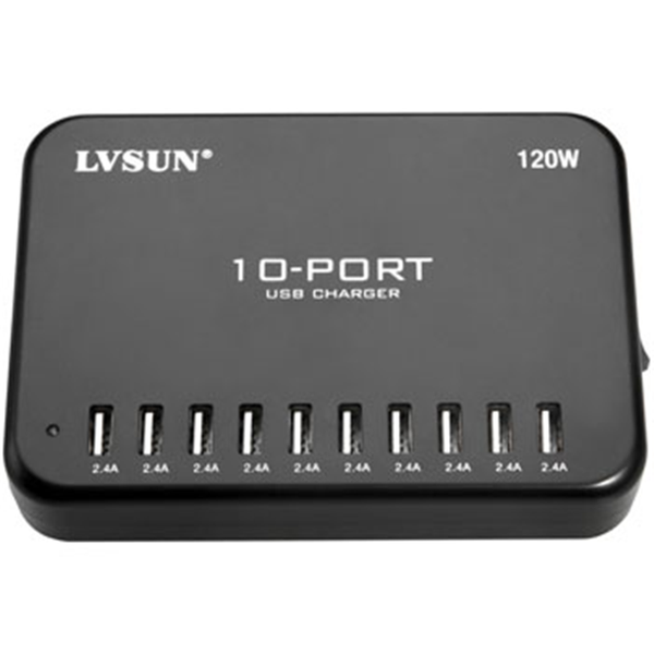 USB Charger LVS120 10-Port 120W This 120W 10 Port USB Charger is perfect for all your charging needs, from phones to tablets, iPads and robots. It fits neatly into any classroom. The unit can charge 10 iPads simultaneously.With technology emerging in classrooms, charging all units constantly is a a space consuming project. Often, not enough power points will be available to charge many at the same time. This unit will help you organise charging devices fast, while taking up little space.The unit comes with plug to connect to the wall, and an on/off button to switch off the unit when not in use.