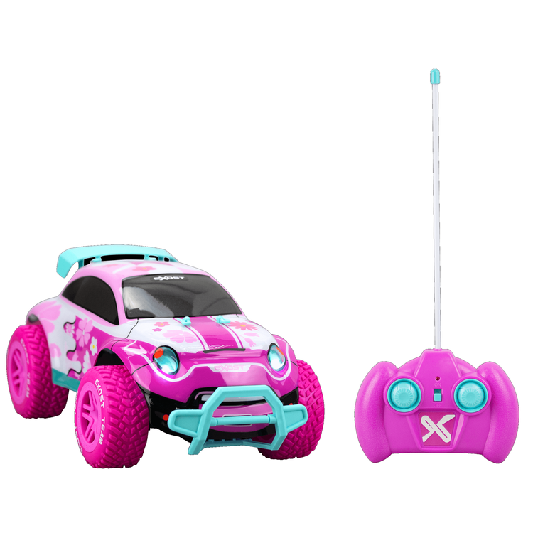 PIXIE is the most coquette car ever! Express your ultimate girl power with this inspiring vehicle. Full control with durable tires for difficult terrains. LED lights for head lights when you turn it on. Show your attitude with unique EXOST car body design, and realise the batteries are included and therefore ready to play! - LED light effect on headlights- Full control with durable tires for difficult terrains- EXOST urban design- Batteries included ready to play