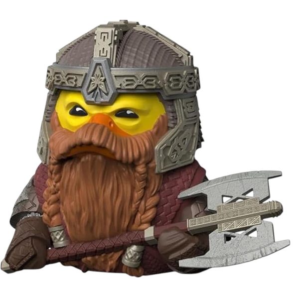 Gimli, how do you fancy becoming an officially licensed Boxed TUBBZ collectable? 'Aye - I could do that!' And it came to pass that Gimli the dwarf from Lord of the Rings became a cosplaying duck and he looks awesome. Bushy beard, helmet in place and wielding his axe, he's bold, brave and ready for action - whether it's in Middle Earth or the duck pond. The TUBBZ - Lord of the Rings - Gimli (Boxed Edition) is a delightful blend of Middle-earth bravado and playful design. Standing at approximately 9 cm (3.54 in) tall, this officially licensed collectible reimagines the indomitable dwarf Gimli as a battle-ready duck, complete with his signature helmet, bushy beard, and trusty axe. Meticulously sculpted and painted, the figure retains all the rugged charm and warrior spirit - just in a whimsical, feathered form. Designed and engineered by Numskull Designs, it's made from durable, high-quality PVC, ensuring vibrant colors and fine detail that collectors appreciate. True to Gimli's character, this duck looks bold and ready for adventure-axe in 'wing,' beard flowing, helmet perched firmly. It's more than a toy; it's a quirky homage to one of Tolkien's most stalwart heroes, aimed squarely at adult collectors and LOTR fans alike. Whether you're building a Fellowship of ducks or celebrating Gimli's indomitable spirit, this piece adds both charm and geeky fun to any collection. - Official Lord of the Rings merchandise- Designed and engineered by Numskull Designs- Boxed TUBBZ Edition- Highly detailed features and made from high quality PVC- Not suitable for children under the age of 3 years