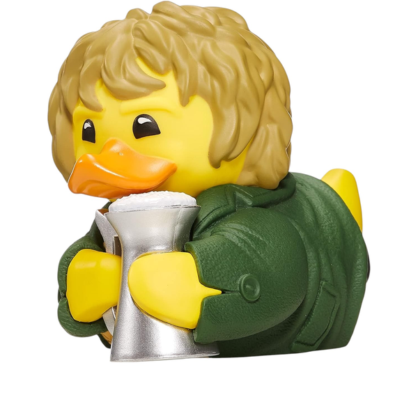 The TUBBZ - Lord of the Rings - Merry Brandybuck (Boxed Edition) is a delightful fusion of Middle-earth charm and quirky collectibles. Measuring approximately 9?cm (3.54?in) tall, this officially licensed PVC figure brings the mischievous hobbit Meriadoc "Merry" Brandybuck to life in cute rubber duck form, complete with his signature cloak and curly hair-finely detailed to reflect his carefree personality. Expertly crafted by Numskull Designs, the boxed edition is designed as a premium collectible, the vibrant paintwork and intricate sculpt make it a must-have for Tolkien fans, blending high-quality craftsmanship with playful design. True to hobbit style, Merry arrives ready for a feast-or a splash-complete with a little mug of ale (or so the sculpt implies), hinting at his penchant for good times. This whimsical touch adds character and humor, making it more than just a figurine-it's a playful homage to one of Tolkien's favorite pranksters. Ideal for display on desks, shelves, or mixing in with other LOTR absinthe memorabilia, this figure balances adorable aesthetics, collectible value, and fandom spirit. Whether you're building a shelf of hobbits or starting the full TUBBZ LOTR line, Merry Brandybuck adds a dash of levity and Middle-earth magic wherever he's placed! - Official Lord of the Rings merchandise- Designed and engineered by Numskull Designs- Boxed TUBBZ Edition- Highly detailed features and made from high quality PVC- Approximately 354" (9cm) tall- Not suitable for children under the age of 3 years