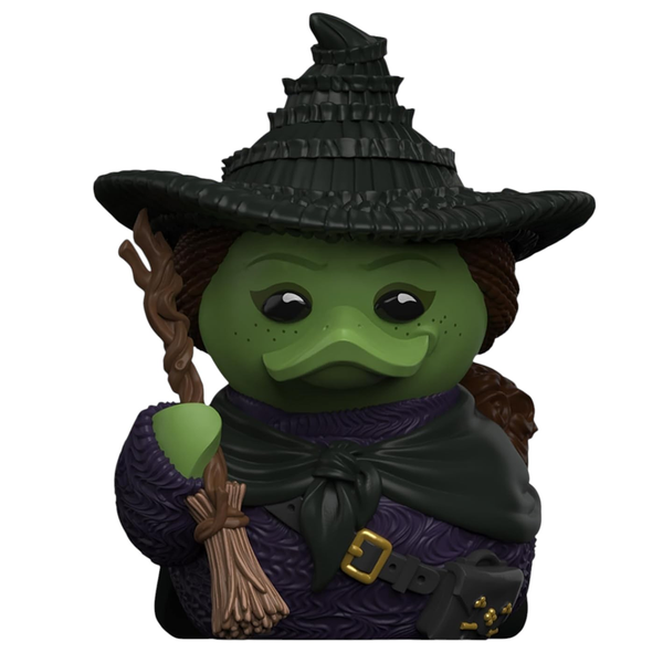 Eco-Friendly Elphaba Duck Collectible Housed in a new eco-friendly cardboard box, it's a sustainable and enchanting addition to your TUBBZ collection. Standing at approximately 9 cm tall, Elphaba is here to defy gravity and redefine collectible fun!