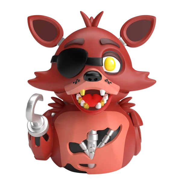 Five Nights At Freddy's: Foxy TUBBZ (Boxed Edition) Collect them all-before they collect you! - Designed by Numskull Designs- TUBBZ - iconic characters turned cosplaying ducks- Boxed Edition- Premium PVC, packed with detail- Stands approx. 3.54" (9cm) outside the packaging- A must have for any Five Nights at Freddy's fan!?- This toy is not suitable for children under the age of 3 years Foxy Joins the TUBBZ Lineup From pirate cove to display case, Foxy has burst onto the scene as a TUBBZ duck with serious attitude. Eye patch? Check. Hook hand? Check. Terrifying grin?