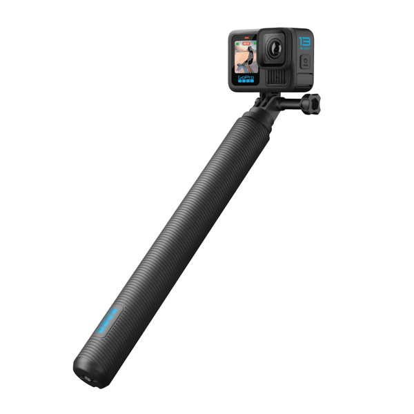 Premium extension pole for 360 + traditional video Stretching to 48in (122cm) and collapsing to 10in (25cm), this extension pole is great for capturing selfie footage, rising above the action or getting closer to it. When used with 360 cameras, it completely vanishes out of the shot-letting you create incredible self-capture shots that look as if you're being recorded by another person. - Includes the extension pole, mounting finger adapter, wrist lanyard and thumb screw- Extends to 48in (122cm) to get closer to the action and collapses to 10in (25cm) for on-the-go use- 1/4-20 mount can be used for 360 cameras like MAX to capture invisible pole shots- Lightweight aluminum sections are strong and rigid, designed for quick and easy extension- Premium anti-slip grip and wrist lanyard help keep the pole secure- 1/4-20 threaded insert also makes it compatible with other industry-standard mounts GET CLOSER TO THE ACTION This durable, lightweight extension pole expands up to 4ft (1.2m) and collapses down to 10in (25cm), so it's perfect for selfies, follow-cams, and shooting with a 360 camera. Plus the anti-slip grip and strong rigidity make it easy to keep a handle on and control. GET THE SHOT. NOT THE POLE. This pole is ideal for capturing with 360 cameras, like MAX-you'll get incredible invisible selfies, third-person drone-like footage, and more iconic 360 shots. COMPATIBLE WITH ALL GOPRO CAMERAS With 1/4-20 mounting and included finger adapter, this pole is compatible with all GoPro cameras, as well as other industry-standard mounts. WATERPROOF + DURABLE Like everything we build, this extension pole is tough enough to handle anything you throw at it. WARNING: Use caution when using GoPro Mounts and Cameras as part of your active lifestyle.
