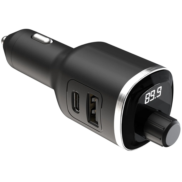 Bluetooth FM Transmitter with Dual USB Ports Connect and charge! Add Bluetooth wireless technology to your vehicle for hands-free phone calls and to stream audio to your car stereo. Dual USB ports (USB-A and USB-C) let you charge two devices at once. - Bluetooth enables your vehicle for hands-free calling.- Uses FM signal to stream music from a phone to car stereo.- Charges two devices at once with dual USB (USB-A and USB-C) ports.- LED digital display shows FM frequency in use.
