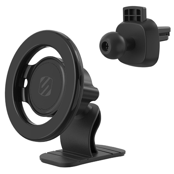 - Holds iPhone models 12 and later using their circle of built-in MagSafe magnets.- Holds iPhone models X, 11 &; SE and Android phones using the included MagicRing Adapter.- The dash mount attaches to the top or front of your dash using the included automotive grade adhesive - just peel, place and stick.- The vent mount option attaches to most vehicle vents, is easy to install, remove and move to another vehicle. It can also be used as a kickstand for your phone.