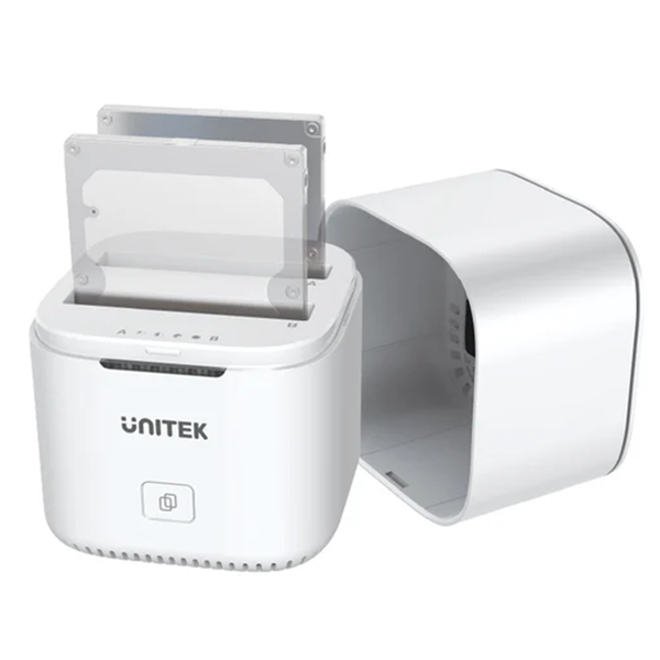 This UNITEK Dual-Bay SATA Docking Station offers standalone drive cloning that makes it easy to back up your data. You can also connect it with your computer to dock and swap your drives as your scalable storage solution. USB3.0 to SATA6G 2.5" Docking Station with UASP Function. DAS/ Cloud Storage Center As a Direct Attached Storage, you can store or backup your memories or documents as a mega data center. With an FTP-supported router, you can access your files anytime anywhere. SATA Compatibility 2 SATA slots support 2.5" SATA III HDDs and SSDs up to 16TB in total (single max. 8TB). LED Indicators It shows the working status of the disk and the progress of the offline clone. UASP &; SuperSpeed File Transfer It supports UASP for efficient data read/ write, with SuperSpeed data transfer up to 5Gbps. Standalone Hard Drive Duplicator It supports offline clones from the source disk to target disk up to 60Mbps without connecting the PC.