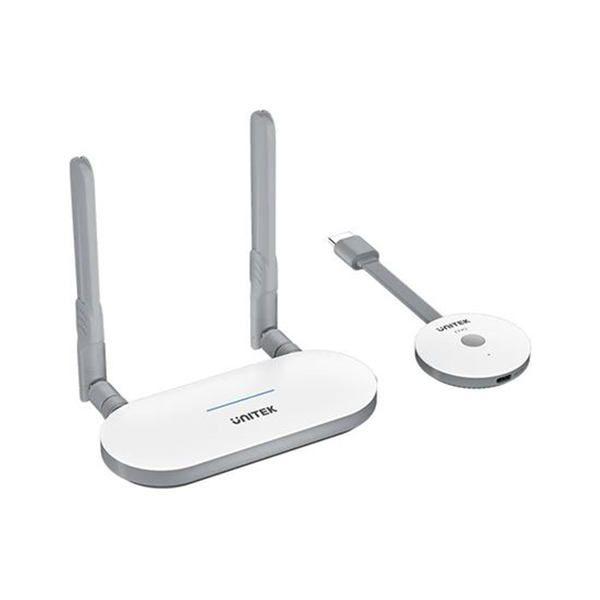 UNITEK Wireless HDMI transmitter and receiver kit enables seamless streaming up to 50M at ease. Effortlessly screencast/ stream anything from laptops/ TV boxes/ other HDMI devices to TV, monitor or projector without the need for messy cables. Enjoy a seamless and hassle-free casting experience with this reliable and convenient HDMI wireless solution. Wireless Casting At Ease UNITEK Wireless HDMI transmitter and receiver kit is designed to stream contents from laptops, cameras or TV Boxes to HDTVs, projectors and monitors. This versatile kit eliminates the limitations of traditional HDMI wiring Extensive Compatibility This kit is compatible with a wide range of HDMI output devices such as computers, laptops, TV boxes, video cameras and more. Users can disconnect and reconnect the HDMI transmission by a single press of one button. Plug &; Play UNITEK Wireless HDMI transmitter and receiver kit leaves the hassle of App installation behind, no WiFi connection required. Experience the ultimate convenience and efficiency with this user-friendly solution. Up To 50M Stable Wireless Transmission UNITEK HDMI transmitter and receiver kit features a high performance smart chip to prevent signal interference, resulting in minimal delay and lag. Enjoy uninterrupted streaming of full HD