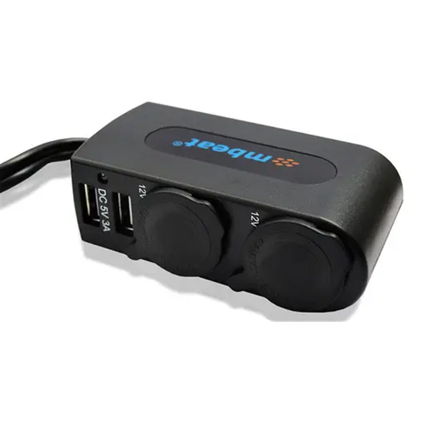 The mbeat Dual port USB and cigarette lighter charger features dual port USB design with 3A current output and two extra cigarette lighter expanders. This device allows users to charge 2 digital devices - be it a Samsung Galaxy Pad, iPad or Smartphone - simultaneously. The extra cigarette lighter expander can also power additional digital devices such as a GPS, music transmitter or USB fan. Made from robust components, this durable device also includes a free Hook and loop fastner sticker, making attaching or removing the device from your dashboard a hassle-free process. - Dual port USB and car lighter design- Fast-charging with 3A output current- Support +5V powered digital device- Capable to work with 12V or 24V vehicle- Include free hook and loop fastner sticker to attach to your dash