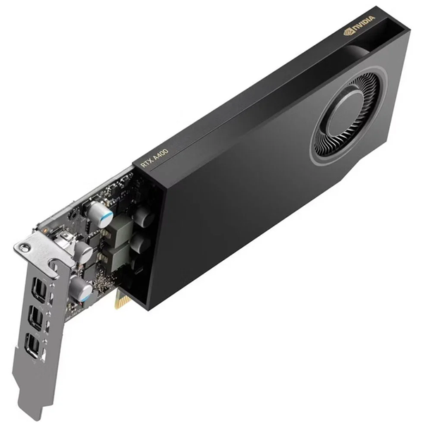NVIDIA RTX-Powered Workstations for Every Workflow Real-time ray tracing and AI acceleration is now accessible to all professionals with the NVIDIA RTX A400. Bring realism to your designs, accelerate workflows with AI, and build expansive workspaces. With its compact design that fits any workspace, the RTX A400 empowers you to create anything you can imagine with incredible efficiency. Industry-Leading Performance - Single-Precision Performance 2.7 TFLOPS[1]- RT Core Performance 5.3 TFLOPS[1]- Tensor Performance 43.3 TOPS[2] 1. Peak rates based on GPU Boost Clock.2. Effective INT8 trillion operations per second (TOPS) using the sparsity feature. Powered by the NVIDIA Ampere Architecture NVIDIA Ampere Architecture-Based CUDA CoresAccelerate graphics and compute workflows with up to 2X single-precision floating point (FP32) performance compared to the previous generation. Second-Generation RT Cores With the introduction of RT Cores to the RTX A400, professionals can produce more visually accurate renders faster with hardware-accelerated motion blur and real-time ray-tracing capabilities. Third-Generation Tensor Cores Introducing Tensor Cores ?to the RTX A400 dramatically boosts AI-augmented application performance, bringing advanced capabilities like AI denoising, DLSS, and more to graphics workflows. 4GB of GPU Memory Drive graphics and compute-intensive workflows with 4GB of GDDR6 memory. Engineered for faster memory speeds to accelerate your workflow. Low-Profile, Single-Slot Form FactorLeverage a power-efficient design that fits into a wide range of workstation chassis. PCI Express Gen 4 Improve data-transfer speeds from CPU memory for data-intensive tasks with support for PCI Express Gen 4. Fifth-Generation NVDEC With the RTX A400, you can edit and play videos faster than ever before, thanks to the fifth-generation NVDEC. Plus, with support for AV1 decoding, you can enjoy higher efficiency and smoother playback of next-generation video formats. Workloads - Unlock the Power of RTX for Your Workloads Design and VisualizationPower high-fidelity creative workflows with NVIDIA RTX graphics.