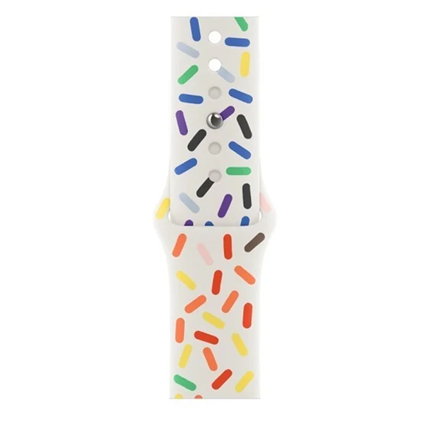 Apple 45mm Pride Edition Sport Band - M/L Featuring a joyful design, the Pride Edition Sport Band incorporates a full range of vibrant colors to celebrate the beauty and diversity of the LGBTQ+ community. In addition to the colors of the core Pride flag, black and brown symbolize marginalized LGBTQ+ communities of color, as well as those impacted by HIV/AIDS. Light blue, pink, and white honor trans and nonbinary people. -