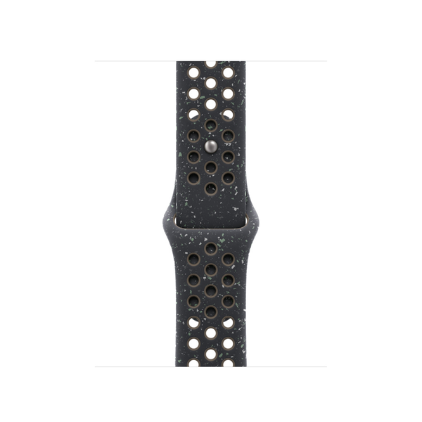 Nike Sport Band - S/M Made with compression-moulded perforations for breathability, the Nike Sport Band is durable and strong, yet surprisingly soft. It features colourful flakes that create a randomised pattern, making each band completely unique. The smooth, dense material drapes elegantly across your wrist and feels comfortable next to your skin. A new aluminium pin-and-tuck closure gives the pin a fresh matt finish. This band contains at least 32 per cent recycled fluoroelastomer, with each flake containing at least 66 per cent recycled fluoroelastomer.
