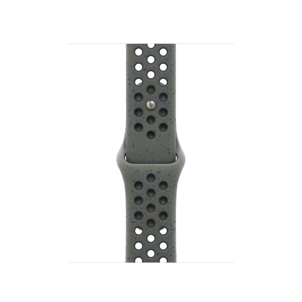 Nike Sport Band - M/L Made with compression-moulded perforations for breathability, the Nike Sport Band is durable and strong, yet surprisingly soft. It features colourful flakes that create a randomised pattern, making each band completely unique. The smooth, dense material drapes elegantly across your wrist and feels comfortable next to your skin. A new aluminium pin-and-tuck closure gives the pin a fresh matt finish. This band contains at least 32 per cent recycled fluoroelastomer, with each flake containing at least 66 per cent recycled fluoroelastomer.