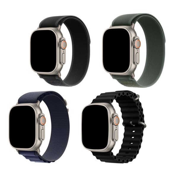 Generic 49mm/46mm/45mm/44mm - 4 Pack Strap for Apple Watch (1xBlack Nylon Sport/1xDark Green Nylon Sport/1xBlack Silicone Ripple/1xMidnight Blue Nylon), Compatible with Apple Watch Ultra 1&2, Series 10/9/8/7/6/SE/5/4/3/2/1