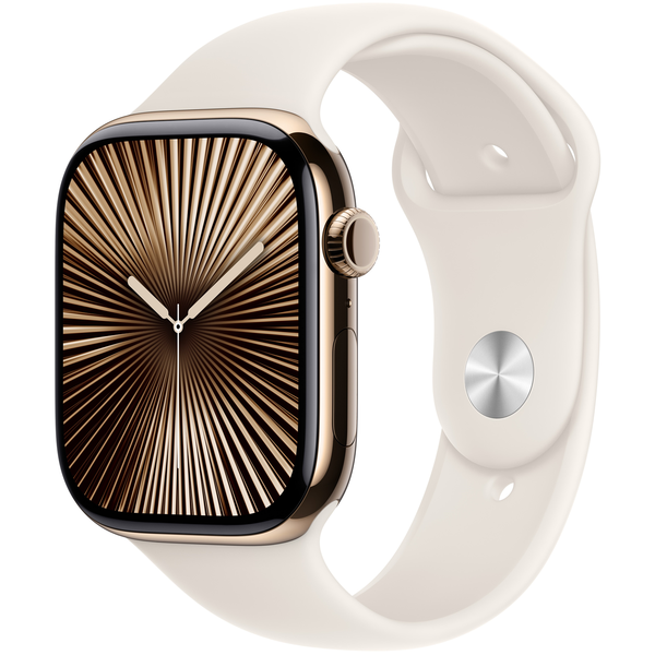 Apple Watch Series 10 (GPS + Cellular) 46mm - Gold Titanium Case with Starlight Sport Band - S/M