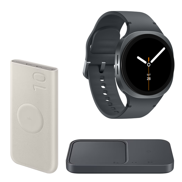 Samsung Galaxy Watch8 40mm (Bluetooth) - Graphite Bonus Samsung 15W Duo Wireless Charging Pad & 10,000mAh Wireless Power Bank (RRP $228)