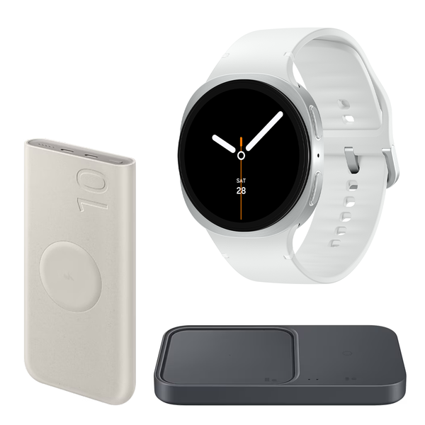 Samsung Galaxy Watch8 44mm (Bluetooth) - Silver Bonus Samsung 15W Duo Wireless Charging Pad & 10,000mAh Wireless Power Bank (RRP $228)