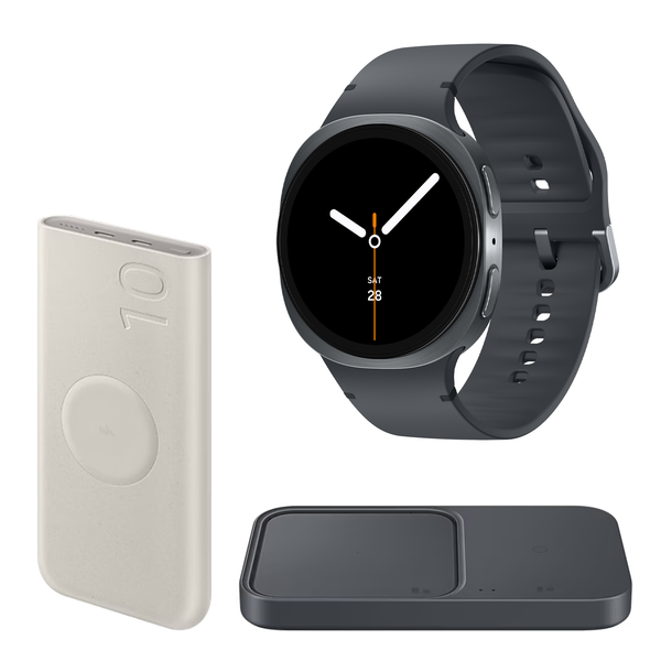Samsung Galaxy Watch8 44mm (LTE) - Graphite Bonus Samsung 15W Duo Wireless Charging Pad & 10,000mAh Wireless Power Bank (RRP $228)