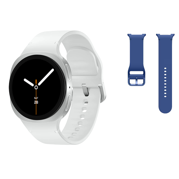 Samsung Galaxy Watch8 44mm (LTE) - Silver & Samsung Galaxy Watch8 & Watch8 Classic Sport Band (M/L) - Blue Combo