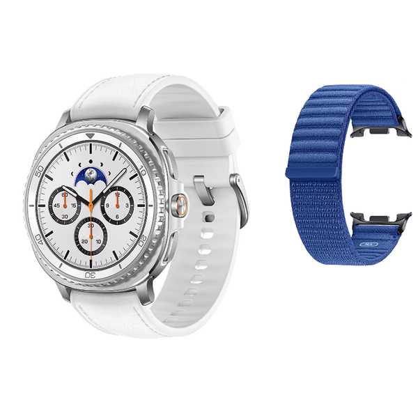 Samsung Galaxy Watch8 Classic 46mm (Bluetooth) - White & Samsung Galaxy Watch8 & Watch8 Classic Fabric Band (M/L) - Blue Combo