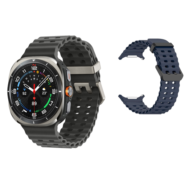 Samsung Galaxy Watch Ultra - Titanium Silver with Graphite Marine Loop & Silicone Galaxy Watch Ultra Strap - Navy Blue Combo