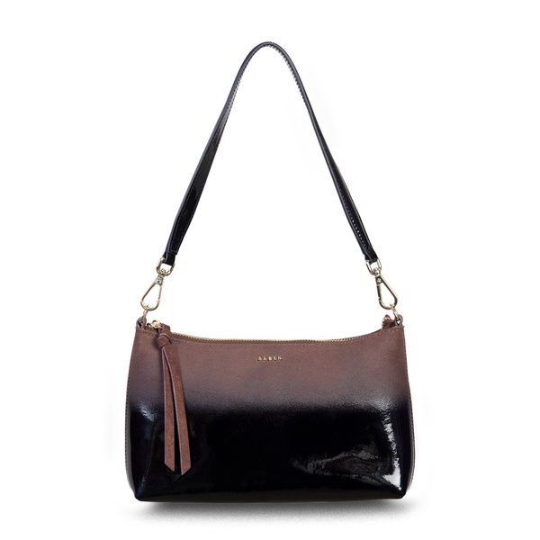 The unique dipped leather showcases a stunning ombré effect — soft suede gradually transitioning into a glossy, patent-like finish that catches the light beautifully. She is perfectly sized to fit your phone, wallet, and a few small essentials without the bulk. The slim silhouette sits comfortably under your arm, keeping you hands-free and effortlessly chic whether you're out for cocktails or catching up with friends.